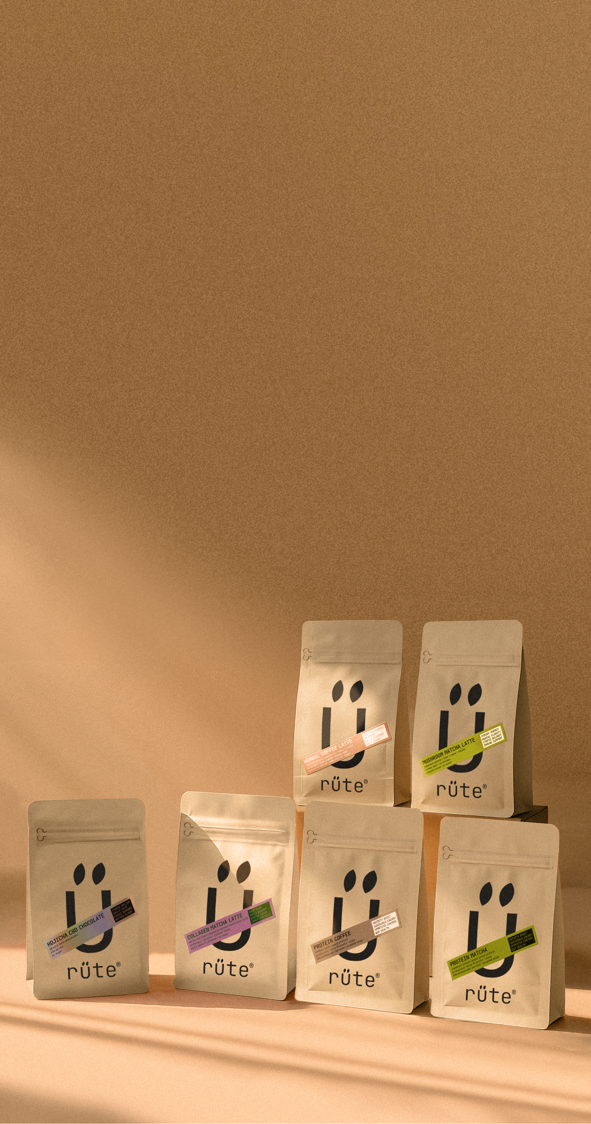Rüte creates functional drinks made with coffee, matcha, or chicory — enhanced with protein, collagen, and carefully selected botanicals.