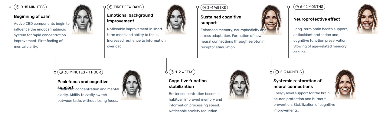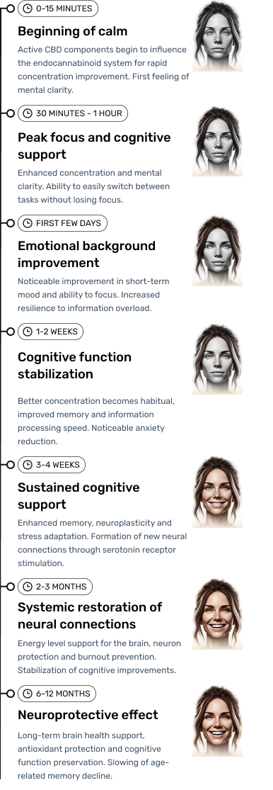 Yes. 83% of clients notice the first positive changes already on day 3-4: better sleep, less unfocus, easier awakening. By the end of the first week, 91% note significant improvement in concentration and emotional balance.