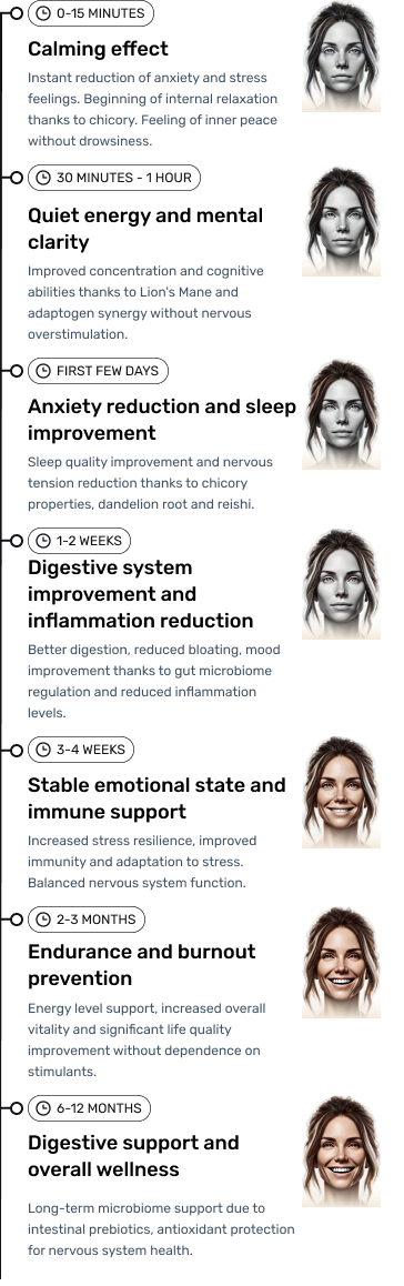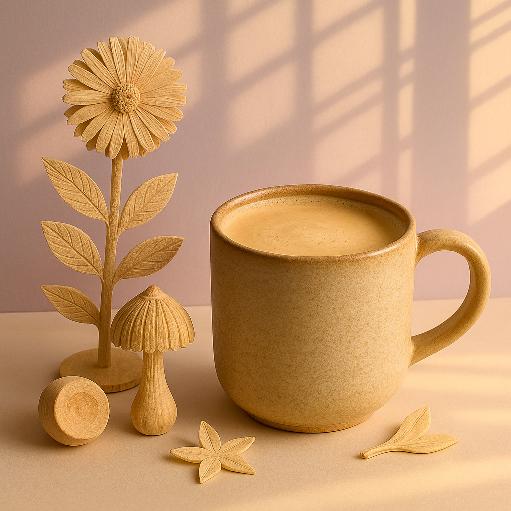 At its core is chicory, rich in inulin, which acts as a prebiotic and supports gut microbiota — a key element for the production of serotonin and other neurotransmitters that regulate mood. To this base, we added dandelion root, which has been used for centuries to support liver health — the body’s main detox organ — as well as valuable functional mushrooms that support the nervous system without stimulation.