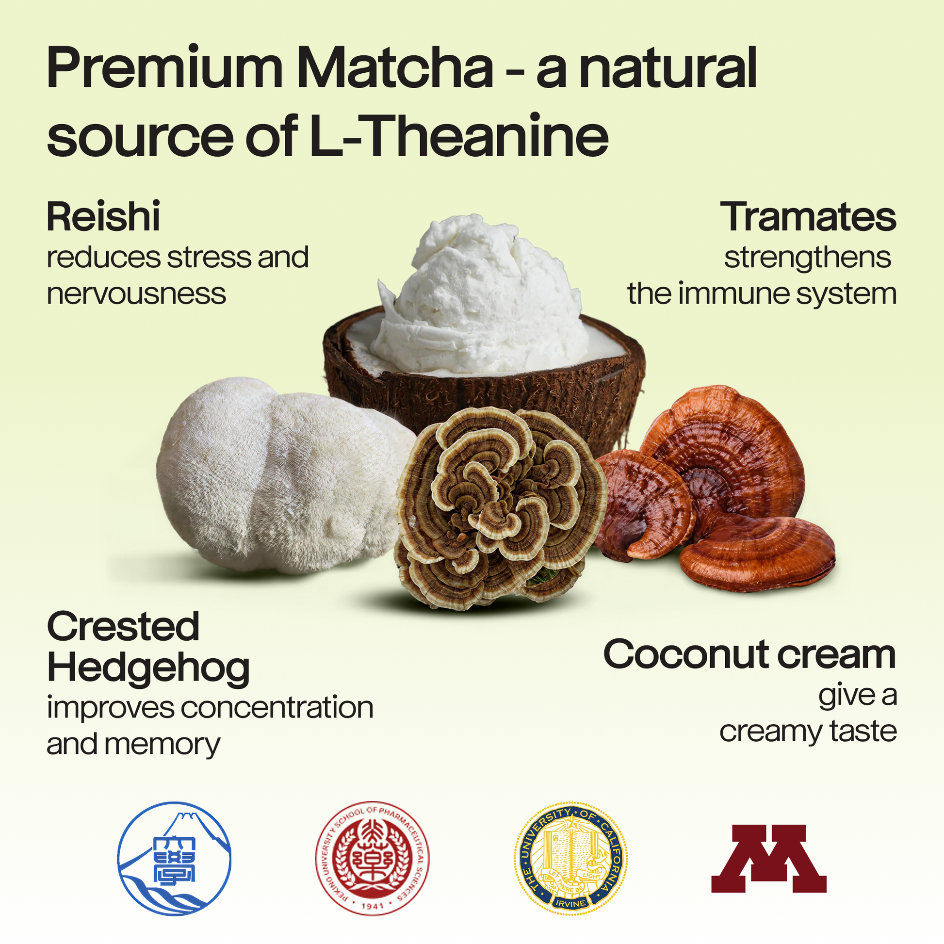 Elevated cortisol levels from chronic stress can lead to exhaustion and reduced cognitive function.L-Theanine and adaptogenic mushrooms have natural calming properties, helping lower stress, stabilize the nervous system, and maintain balance in the body.